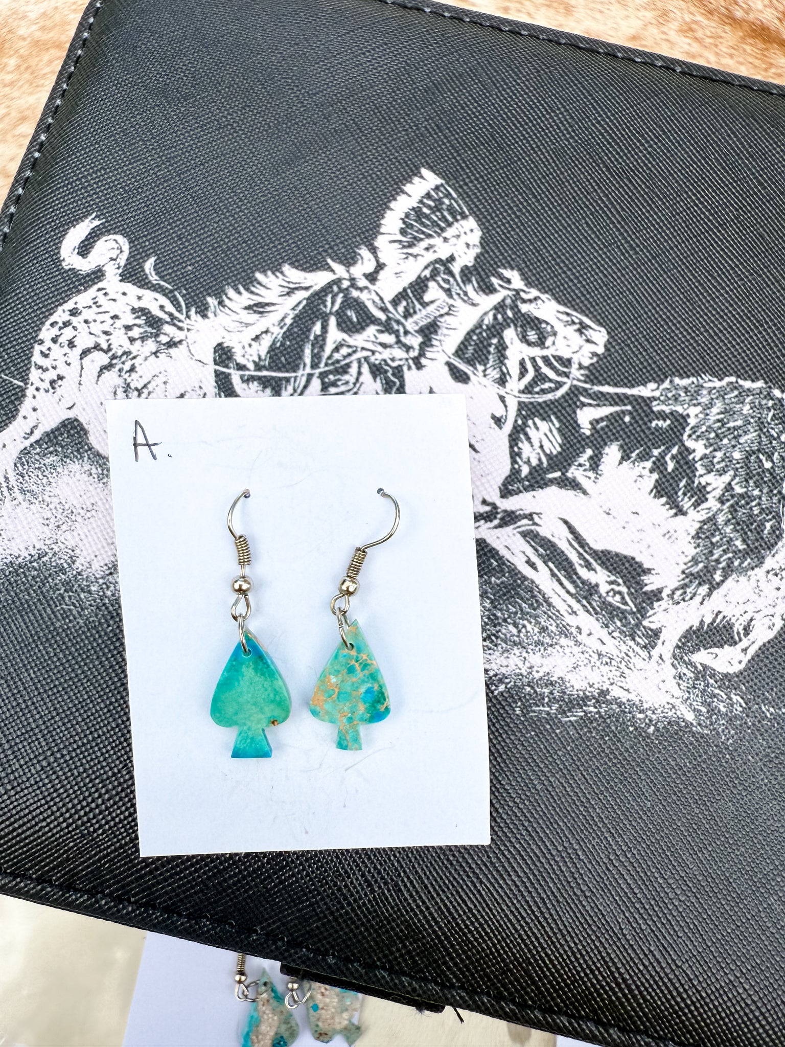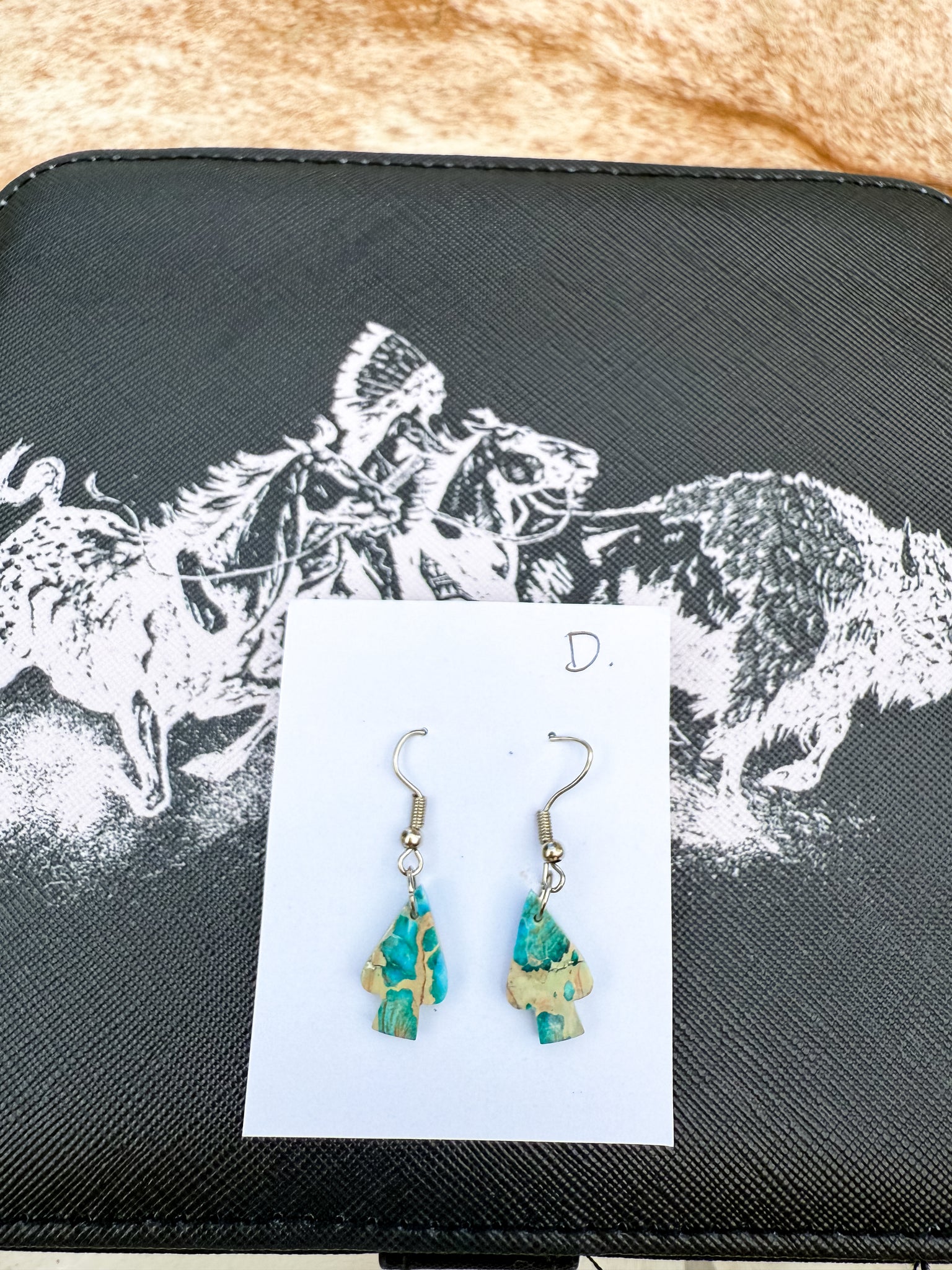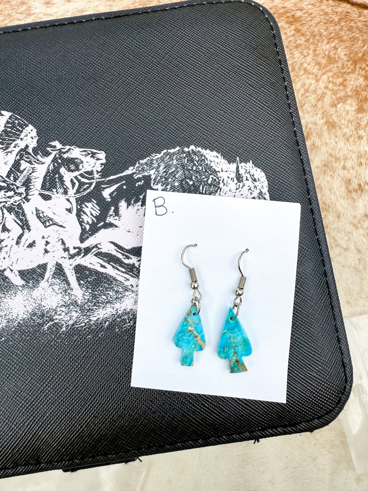 Beautiful blue indigo slab earrings in an arrowhead shape. Each earring varies in color. In a sterling silver hook with back. Your choice of option A,B, C, or D. Measuring about 7/8” long. Lightweight.