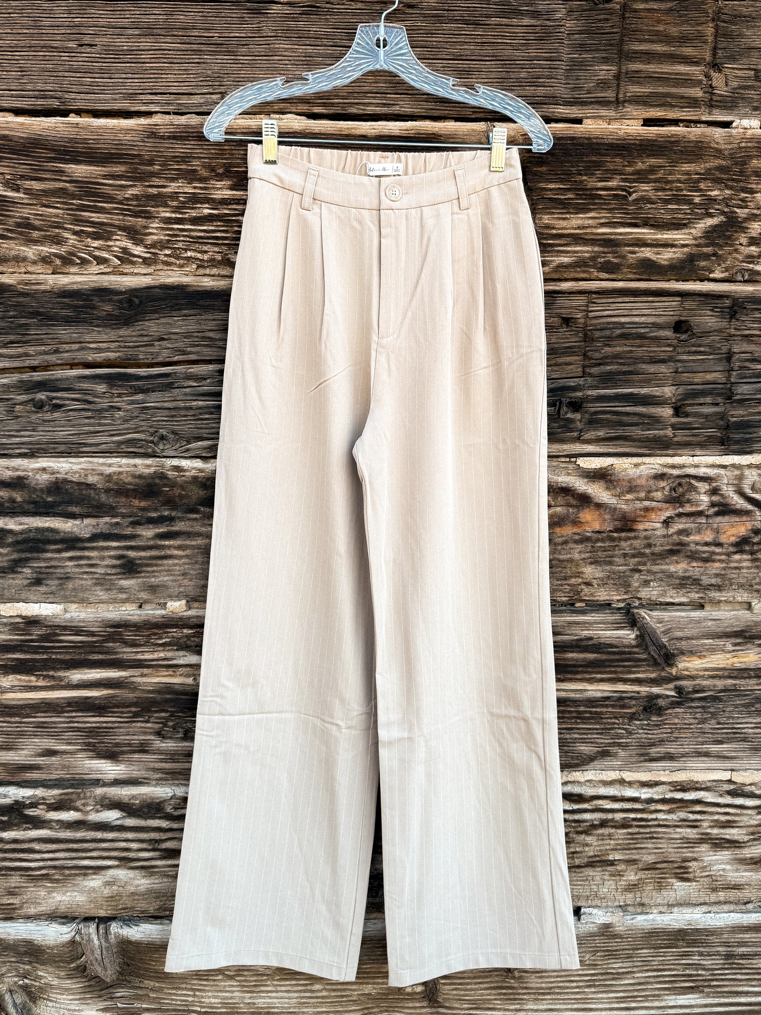 These classic trousers bring elevated & elegant vibes to any outfit. Pockets & belt loops makes it all even better. Pair with a tee for a casual look or a blazer, button up, or blouse for an office look. This piece can be worn for a classy look for the NFR too! In your choice of black or beige. Each one features white pinstripes. Running true with slight stretch. A 34β inseam to fit a cute heel or sneaks.Β
