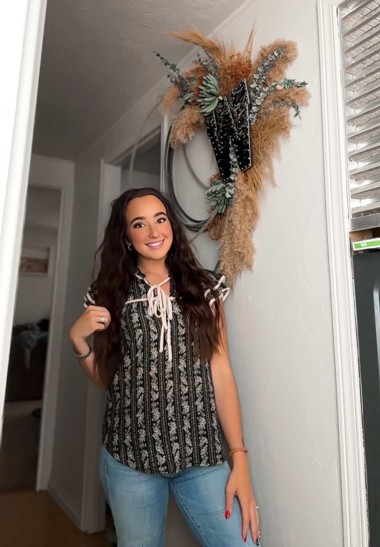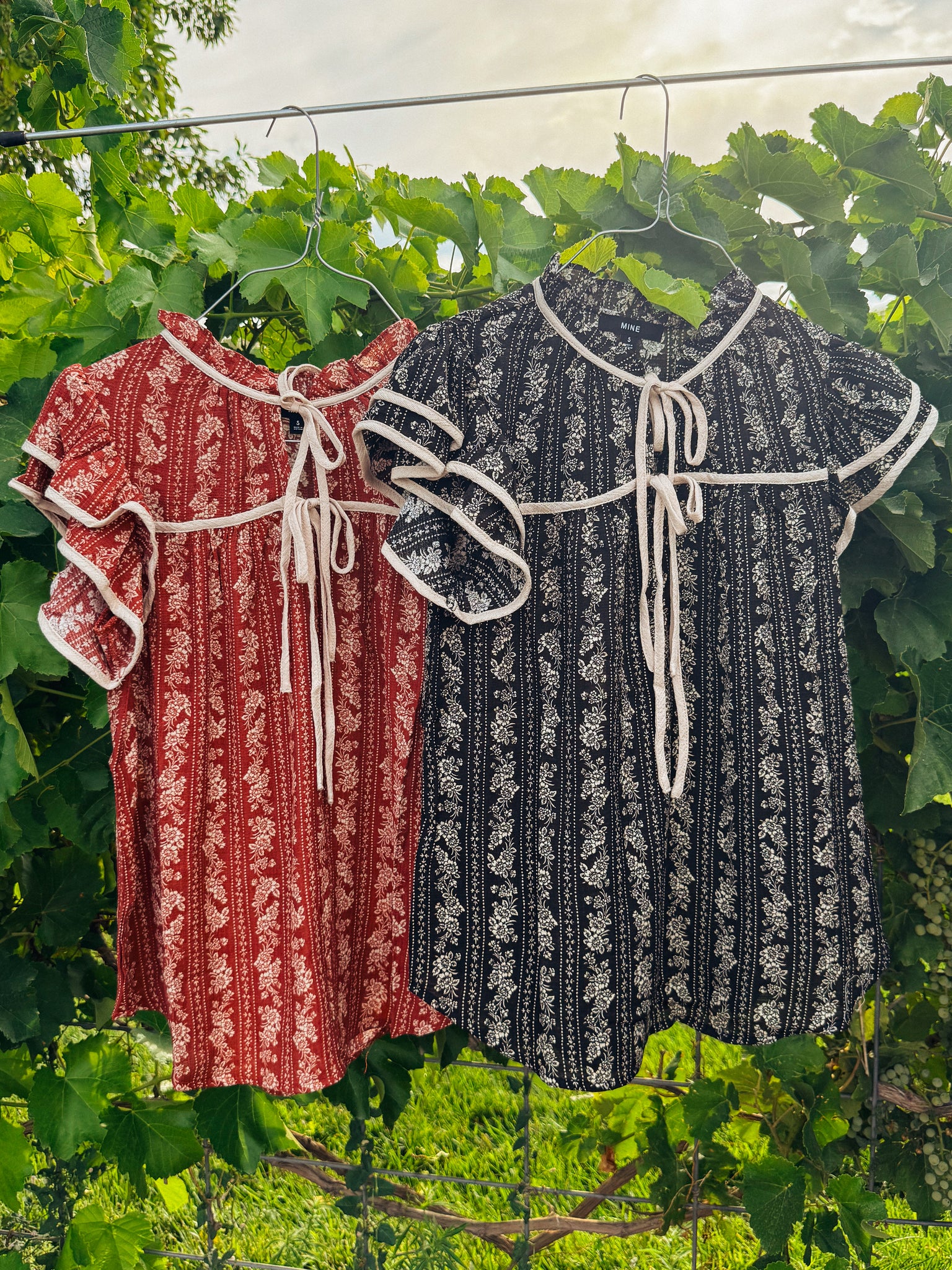 Simplicity & elegance at an affordable price. The letterpress blouse is a perfect top to elevate simple jeans or pair with slacks. In your choice of burgundy or charcoal. Model is size small, wearing a small. Recommended to purchase normal size.