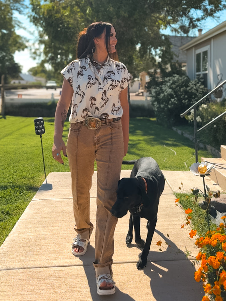 Woven top & more dressy for office wear or date wear. Front breast pocket. Truly one that can be worn multiple ways. Long enough to tuck in & running true to size with a relaxed fit. Subtle gathers at the yoke and back to give a tailored structured look. Curved hem.